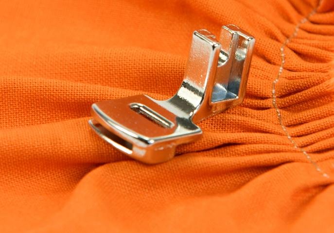 Raffen Fuß für leichte Materialien zu sammeln. Einfache Montage. Entwickelt für Maschinen mit Pendelgreifer (Janome, Bruder, Elna, Toyota, Husqvarna etc. ..).